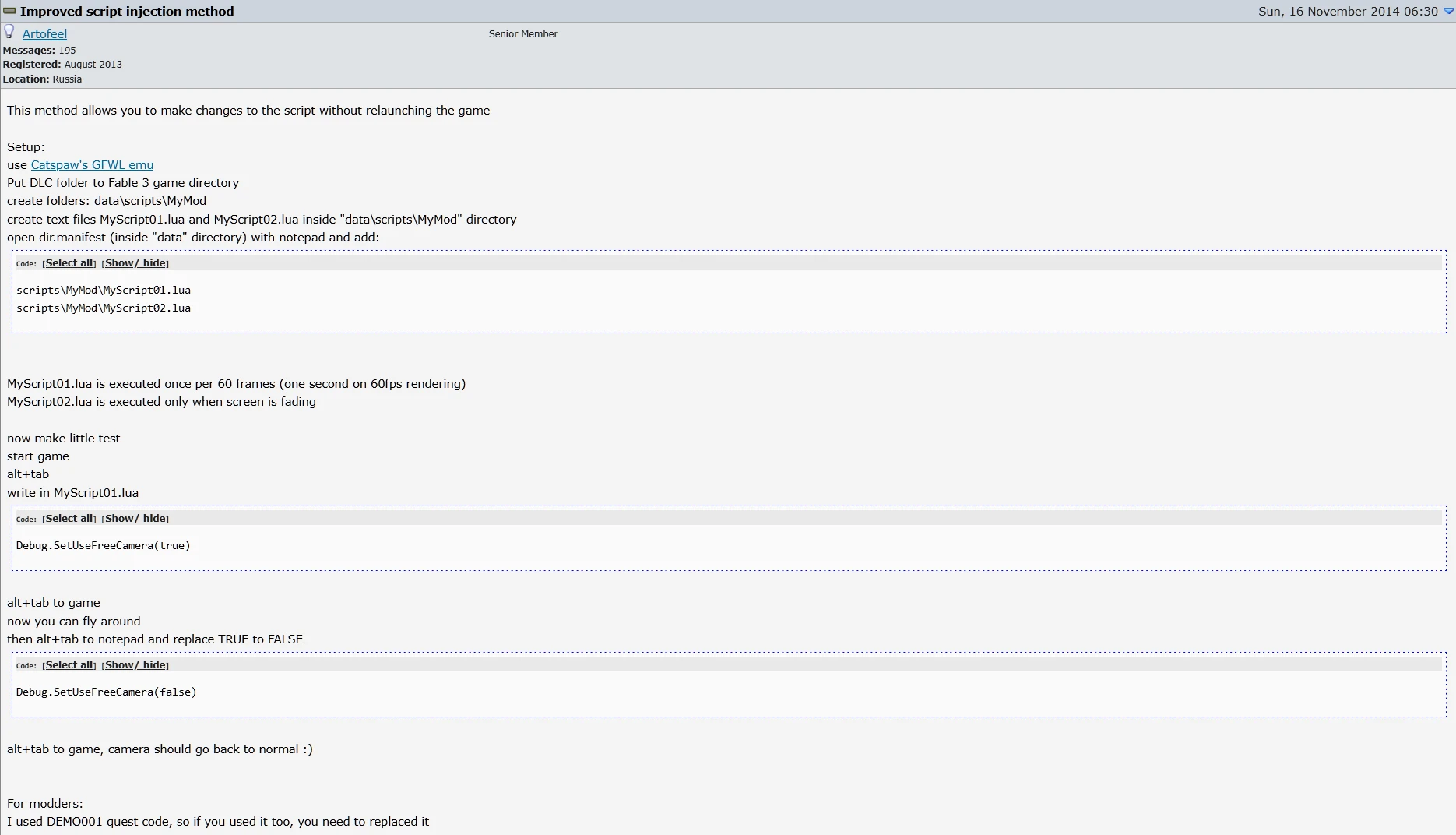 инструмент внедрения скриптов для fable 3